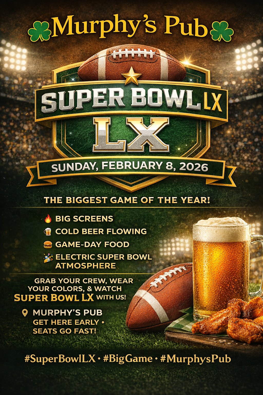 Stay up to date with Murphy's Pub. Follow us on Instagram @murphys.pub